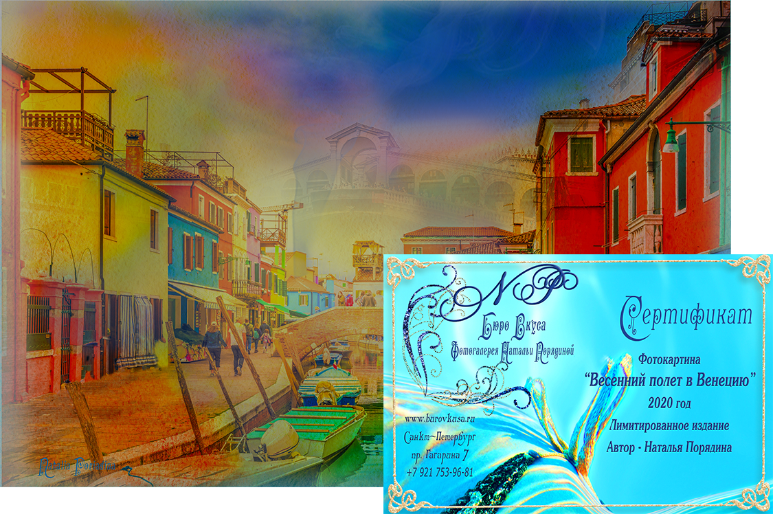 Каждая фотокартина «Бюро Вкуса» фотогалереи Натальи Порядиной печатается в единичном экземпляре и обладает авторским сертификатом подлинности.